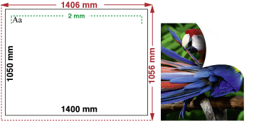 Unsere Druckerzeugnisse werden größer als das Endformat gedruckt. Damit es nicht zu weißen Rändern (Blitzern) kommt, müssen Bildelemente die bis zum Rand reichen, 3 mm größer angelegt werden. Dieser Bereich wird nach dem Druck abgeschnitten.