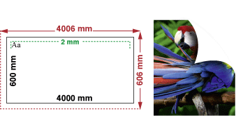 Unsere Druckerzeugnisse werden größer als das Endformat gedruckt. Damit es nicht zu weißen Rändern (Blitzern) kommt, müssen Bildelemente die bis zum Rand reichen, 3 mm größer angelegt werden. Dieser Bereich wird nach dem Druck abgeschnitten.