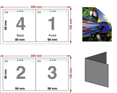 Wenn Du Dir nicht sicher bist, ob Dein Faltblatt richtig angelegt ist, ist es oft sehr hilfreich das Dokument auf dem eigenen Drucker einmal auszudrucken, wenn Du dann Innen- und Außenseite rückseitig aneinander legst, in der Orientierung, wie sie auch aus Deinem Drucker gekommen sind, sieht Du sofort ob Deine Seiten richtig gedreht sind.